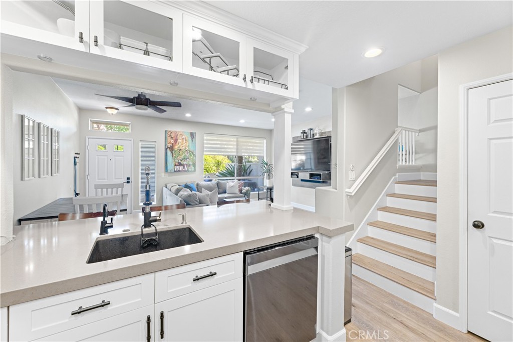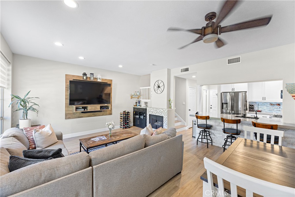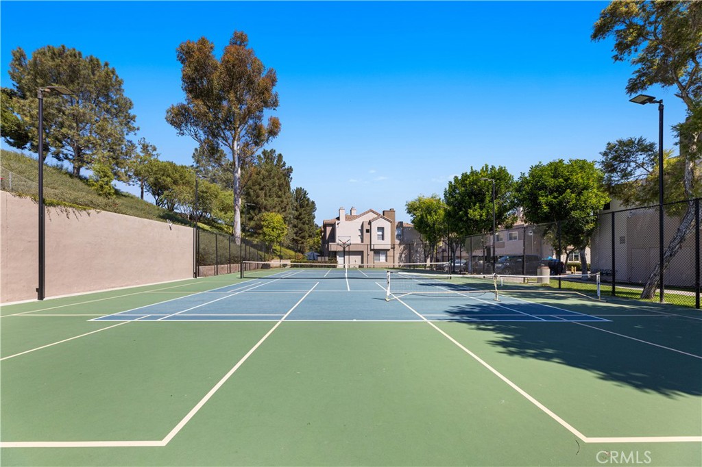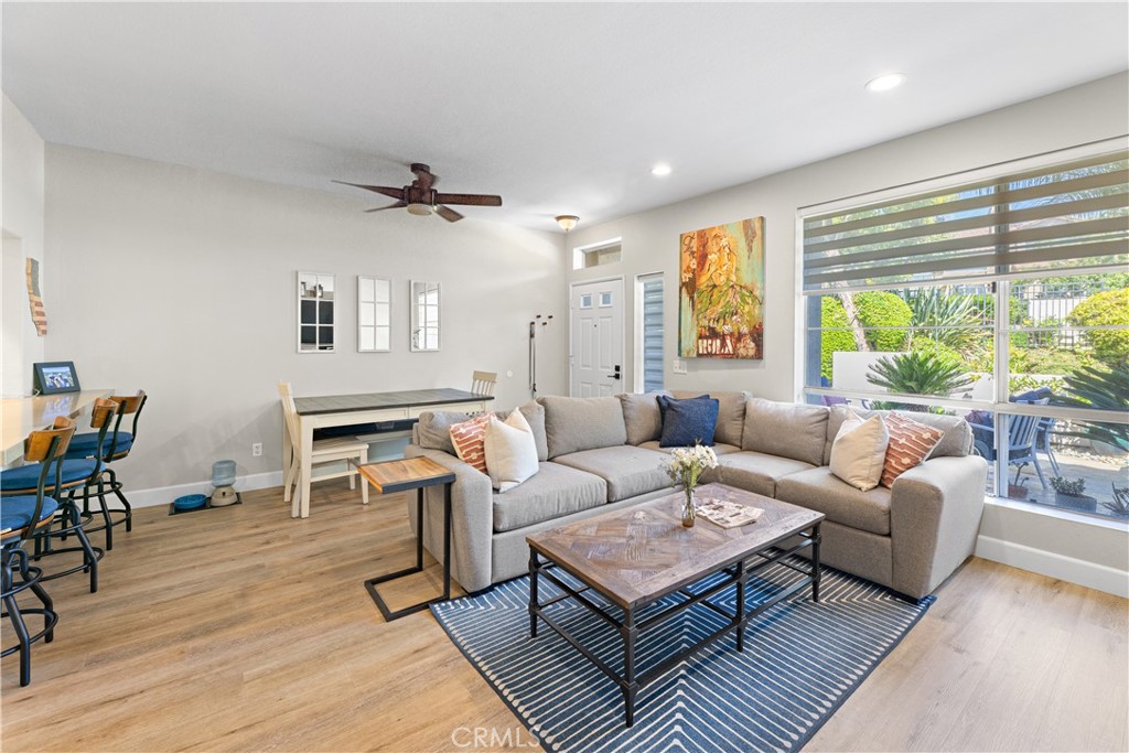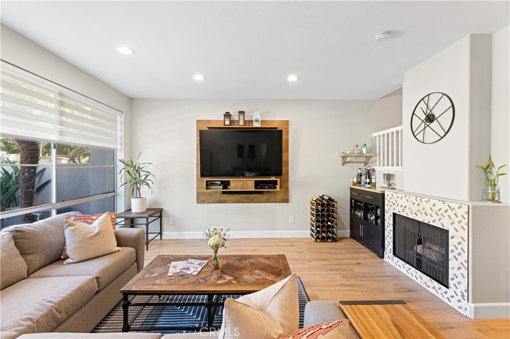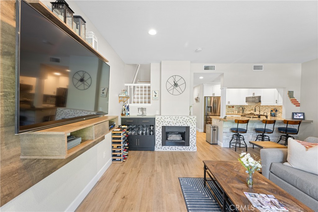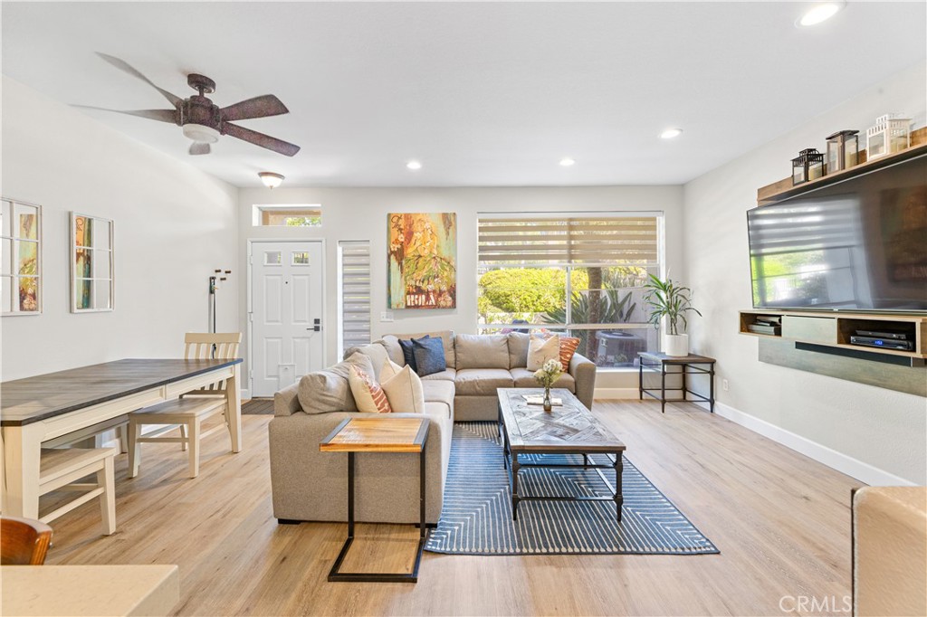 Welcome to your meticulously remodeled 3 bed, 2.5 bath townhome nestled in the heart of Aliso Viejo. Boasting a thoughtfully redesigned layout, this home offers an inviting open floor plan adorned with modern accents and functional upgrades. The kitchen features sleek quartz countertops complemented by stainless steel appliances, perfect for culinary enthusiasts and entertainers alike. Every room is equipped with ceiling fans for added comfort, and the outdoor natural gas BBQ connection sets the stage for alfresco dining and gatherings. Zebra blinds throughout the home offer both privacy and natural light control, while a custom-built TV center and dry bar provide a touch of luxury and convenience. Newly installed wall-to-wall vinyl flooring completed in 2020 adds durability and aesthetic appeal, ensuring a stylish yet low-maintenance lifestyle. With its prime location and meticulous updates, this townhome presents a rare opportunity for modern living in Aliso Viejo. Outside, the community amenities include a sparkling pool, playground, and a sports court offering tennis, basketball, and pickle-ball facilities.