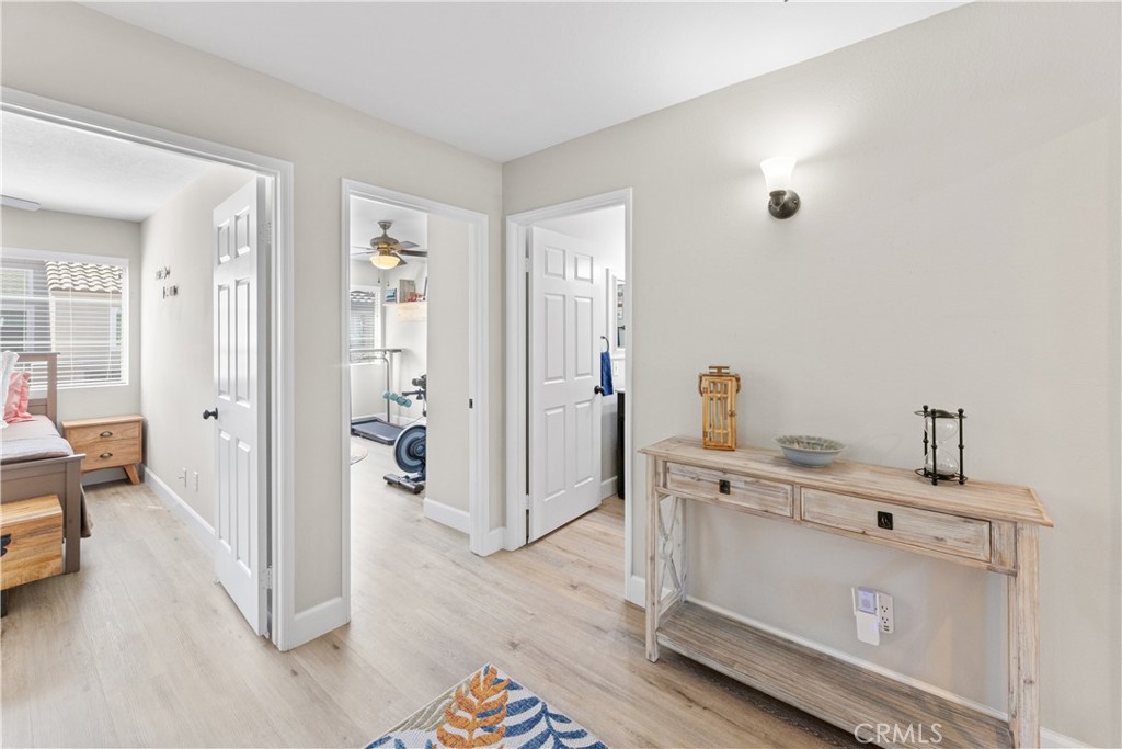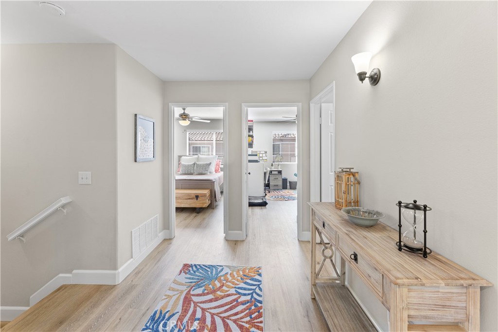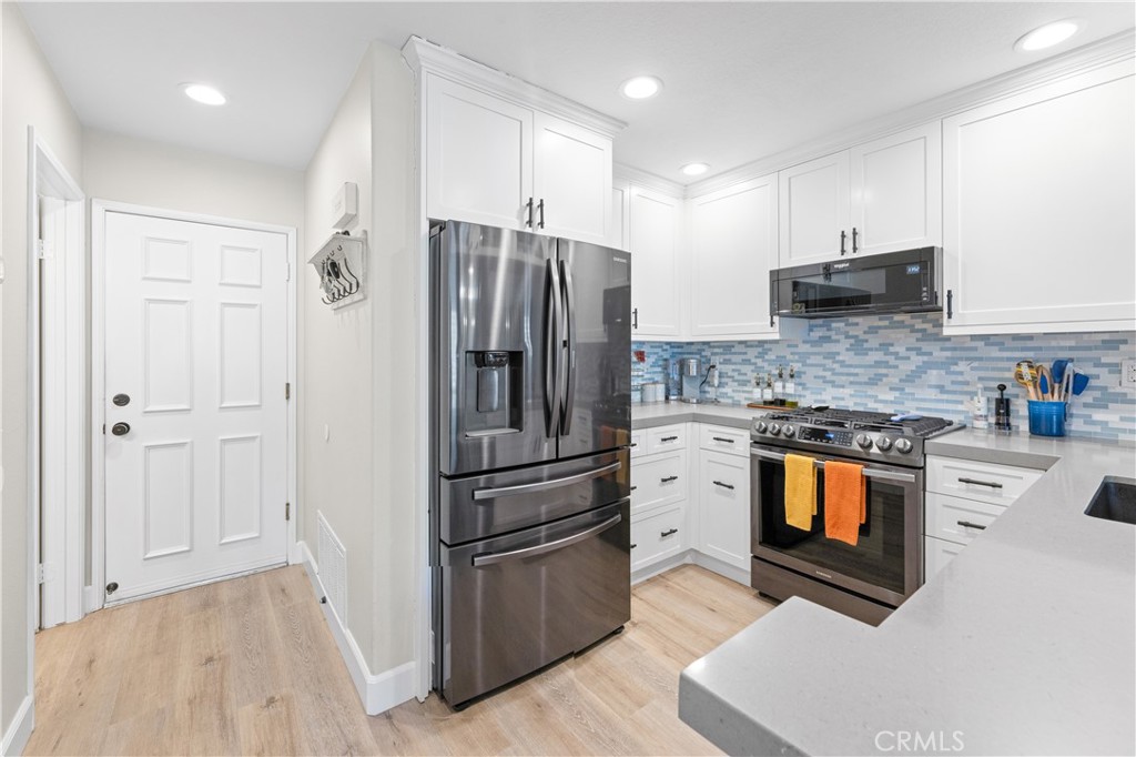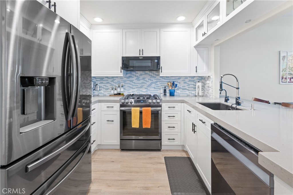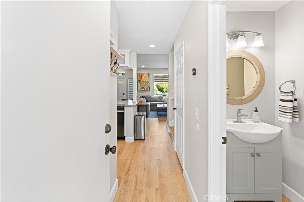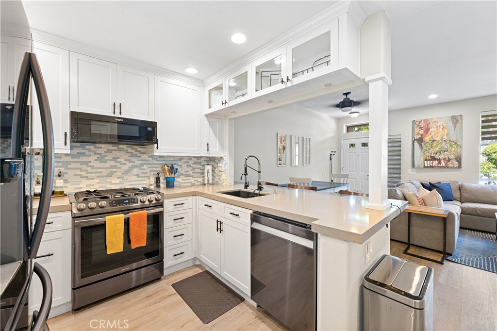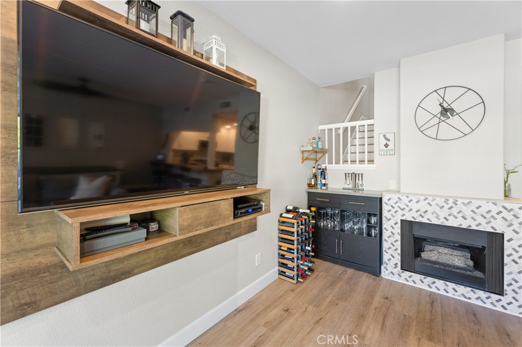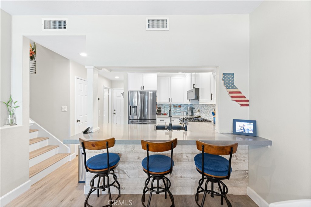 Welcome to your meticulously remodeled 3 bed, 2.5 bath townhome nestled in the heart of Aliso Viejo. Boasting a thoughtfully redesigned layout, this home offers an inviting open floor plan adorned with modern accents and functional upgrades. The kitchen features sleek quartz countertops complemented by stainless steel appliances, perfect for culinary enthusiasts and entertainers alike. Every room is equipped with ceiling fans for added comfort, and the outdoor natural gas BBQ connection sets the stage for alfresco dining and gatherings. Zebra blinds throughout the home offer both privacy and natural light control, while a custom-built TV center and dry bar provide a touch of luxury and convenience. Newly installed wall-to-wall vinyl flooring completed in 2020 adds durability and aesthetic appeal, ensuring a stylish yet low-maintenance lifestyle. With its prime location and meticulous updates, this townhome presents a rare opportunity for modern living in Aliso Viejo. Outside, the community amenities include a sparkling pool, playground, and a sports court offering tennis, basketball, and pickle-ball facilities.